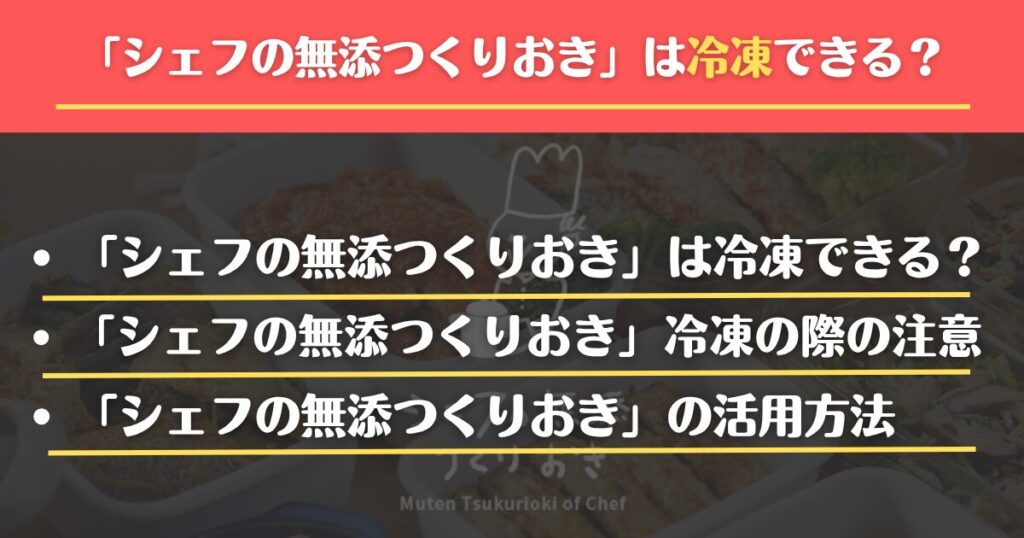 「シェフの無添つくりおき」は冷凍できる?お弁当のおかずにも!余ったおかずの活用方法も紹介