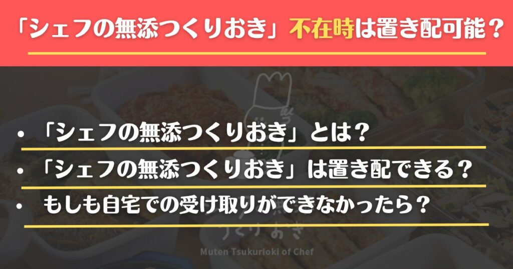 「シェフの無添つくりおき」不在時は置き配可能?確実に受け取るために便利なサービスも紹介!
