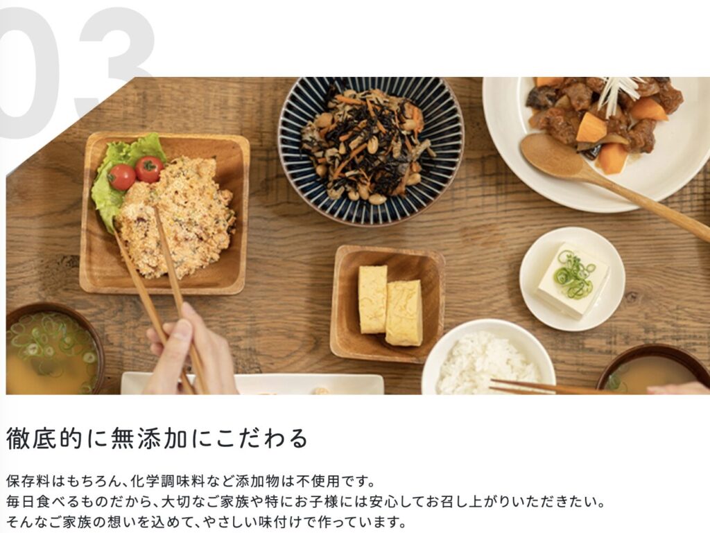 「一流シェフが、あなたの代わりに丁寧に手作り。」というコンセプトからもわかるように、素材や添加物を使わないことを意識し、徹底的に添加物不使用にこだわって作りました。